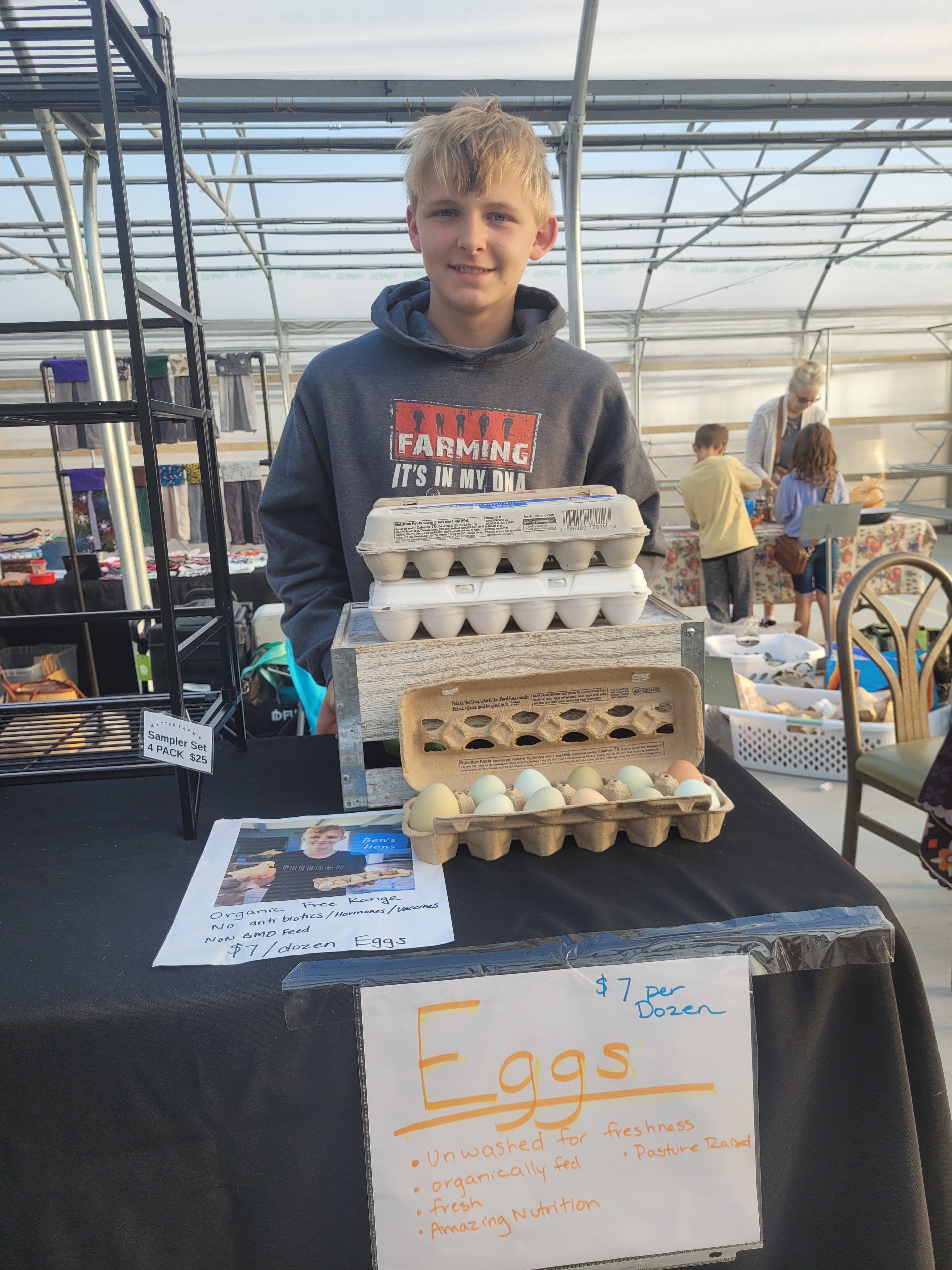 Ben's Hens is proudly run by our hardworking 12-year-old son. In additional to getting exceptional eggs from Ben's happy, healthy hens, you're supporting a young farmer as he learns business skills, responsibilities, and the rewards of hard work.